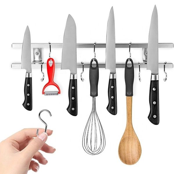 Supply Ability : 20000 Piece/Pieces per Month 18 Inch Stainless Steel Magnetic Knife Bar with Hooks